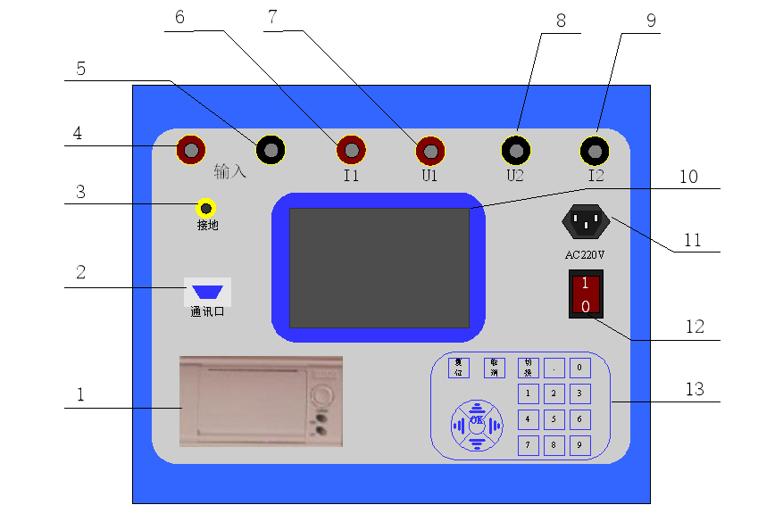 12)儀器工作電源開關;                                              13)數字鍵盤,非常便于輸入。