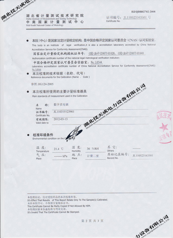 轉載:"YTC620D氧化鋅避雷器特性測試儀的資質證書" 請注明來源于儀天成電力。 更多技術問題請致電儀天成電力客戶服務:027-87876585,技術部專線:027-87876585,在線客服:719388481